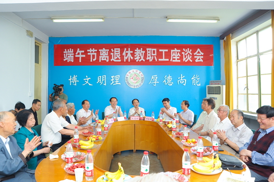 6月13日下午,学院在老校区第一会议室召开端午节离退休教职工座谈会,离休干部、退休院级老领导以及离退休教职工代表等30多人参加了座谈会。院党委书记、院长王志刚出席座谈会并发表重要讲话。座谈会由院党委副书记李全武主持。