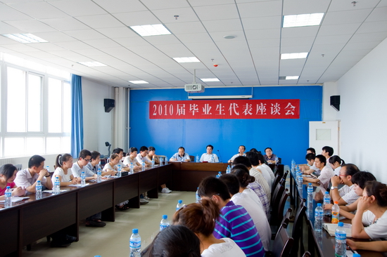 6月23日下午,学院在新校区图书馆514室召开了2010届毕业生代表座谈会。院党委副书记米晓东出席会议并讲话。学工部、学生处、就业中心等部门领导、各系主管毕业生就业工作的学生辅导员和毕业生代表欢聚一堂,以“同忆师生之情,共叙母校之恩”为主题进行座谈。座谈会由学工部(处)长、就业中心主任李周让主持。