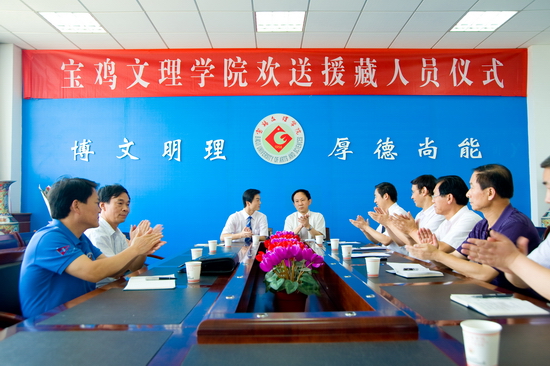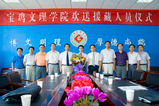 7月11日上午,我院在新校区第一会议室举行援藏人员欢送仪式。院党委书记、院长王志刚,副院长傅志军,援藏干部、哲学系教师张选朝,党委办公室主任张鹏,院长办公室主任贾卫忠,党委组织部部长郑存库,工会副主席刘锡让,人事处处长陈来应,哲学系党总支书记张全省,哲学系副主任何振鹏,党委宣传部副部长孙宏健等参加了欢送仪式。欢送仪式由傅志军主持。