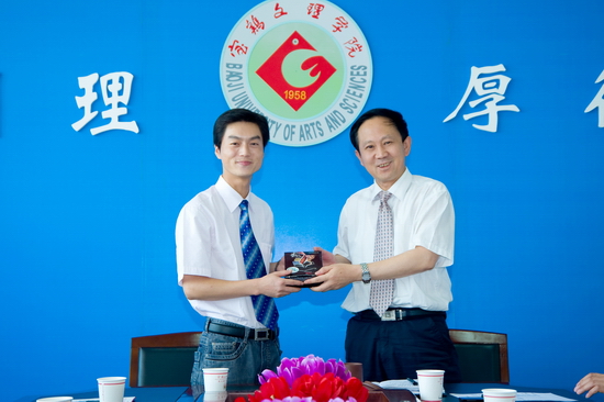 王志刚在欢送会上作了讲话。他代表学院党委、行政和全院师生员工向张选朝同志能够入选参加援藏工作表示热烈的祝贺!他指出,张选朝同志勇于申报援藏工作的这种行为体现了当代高校青年教师的社会责任感,值得全院师生员工尊敬和学习,能参加援藏工作不仅是他个人的荣幸,更是beat365英国官方网站的荣幸。他向张选朝同志提出了六点希望和要求;一是要带着对藏族人民的深厚情谊去工作;二是要按照省委对援藏干部的要求工作;三是要深入实践,了解掌握西藏地区的经济建设、文化教育、社会发展及风土人情;四是要带着beat365英国官方网站优良的校风、工作作风去工作,为以后两校之间建立合作关系作好桥梁纽带;五是要以优异的成绩获得阿里地区党委、政府的肯定;六是要加强锻炼、保重身体,尽快适应阿里地区的工作、生活环境。最后,祝愿张选朝同志在阿里地区工作、生活一切顺利。同时,他要求学院相关部门要多关心张选朝同志的工作生活,解决工作生活中的困难。
