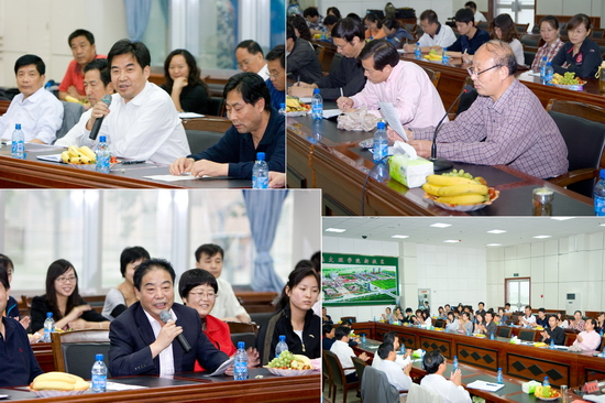 省级教学名师、物理系主任袁都奇教授结合自己的工作实践,就如何做一名合格的高校教师,谈了自己的体会。人事处处长陈来应介绍了2010年新进博士、硕士的基本情况。科技处、教务处、设备处、图书馆等部门和单位的负责人先后发言,表示将全心全意为新教职工的教学科研做好服务和后勤保障工作。