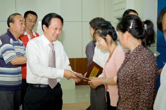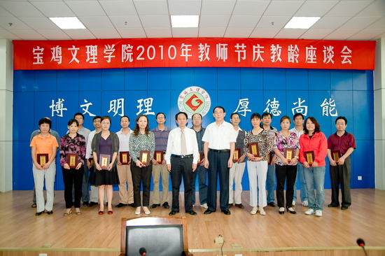 9月10日下午,学院在新校区甘棠厅召开2010年教师节庆教龄座谈会。院党委书记、院长王志刚,党委副书记、工会主席李全武出席会议并向年满25年和30年教龄的教职工颁发了荣誉证书。今年满25年和30年教龄的教职工及党办、院办、组织部、宣传部、教务处、人事处等部门负责人参加了座谈会。李全武主持座谈会并作总结讲话。