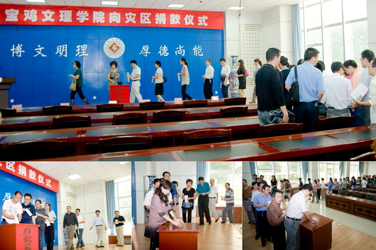 9月16日下午,beat365英国官方网站向灾区捐款仪式在新校区甘棠厅举行。学院机关党委带头组织机关干部职工向灾区捐款。院党委书记、院长王志刚,院党委副书记米晓东、李全武,副院长傅志军、王普藩、赵荣侠以及机关全体党员、职工参加了捐款仪式。捐款仪式由机关党委书记李建民主持。