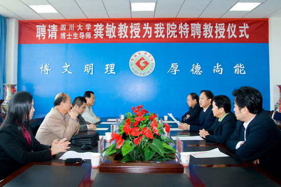 10月15日上午,我院在新校区第一会议室举行聘请四川大学龚敏教授为我院特聘教授仪式。院党委书记、院长王志刚出席会议并讲话。副院长赵荣侠主持聘任仪式。