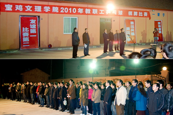 李全武代表院党委和行政对本次比赛活动的举办表示热烈的祝贺,向全体参赛运动员、裁判员和筹备本次比赛的两个群体协会及所有工作人员表示衷心的感谢。他说,此次比赛对于我院广泛开展全民健身活动,积极推进大学文化建设,形成团结和谐、生动活泼的校园文化氛围具有十分重要的作用。希望通过本次比赛进一步增强体质、陶冶情操、享受生活、快乐工作,引领教职工健身活动的开展,为学院发展作出新的更大的贡献。他要求各代表队和参赛队员遵守比赛纪律,服从比赛安排,尊重裁判,文明比赛,全体参赛人员要发扬“友谊第一、比赛第二”的良好体育道德风尚,赛出友谊,赛出风格,赛出水平。外语系教师梅争卫、后勤集团职工张斌分别代表运动员和裁判员讲话和宣誓。