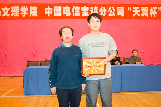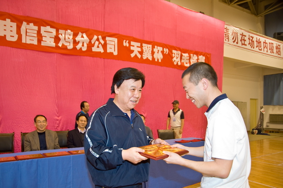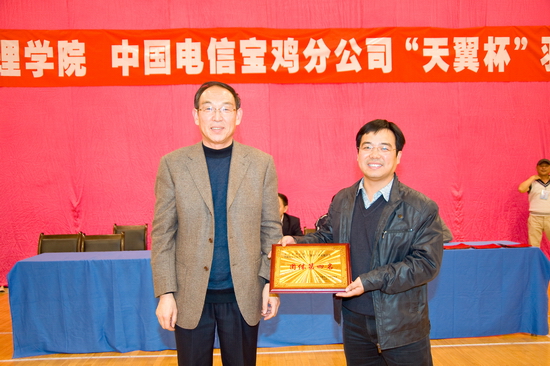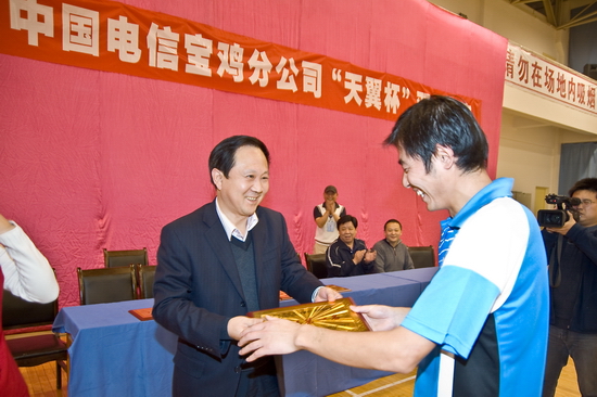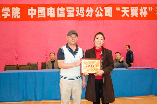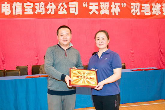 中国电信宝鸡分公司领导为获得团体比赛第三名的行政二分会颁奖