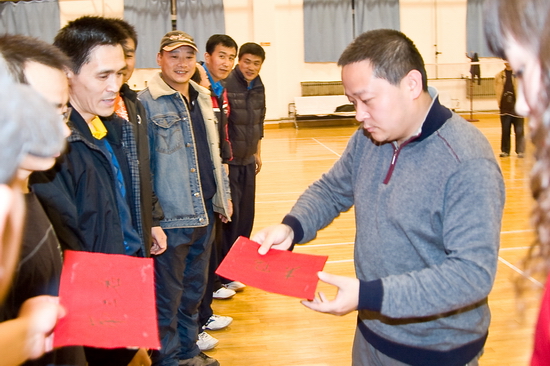 院工会羽毛球协会会长龚明为获得团体比赛第五名的机电系分会颁奖