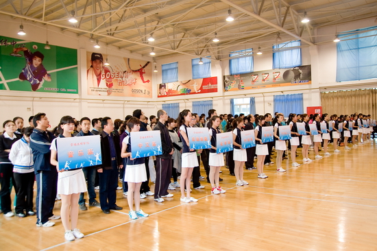 党委书记、院长王志刚为获得团体比赛第一名的体育系分会颁奖
