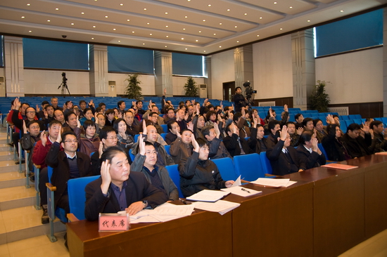 我院专题教职工代表大会于11月21日上午在新校区音乐厅隆重召开。院党委书记、院长王志刚,党委副书记米晓东、李全武,副院长傅志军、王普藩、赵荣侠出席大会,正式代表和列席代表参加了本次大会。本次教代会的指导思想以邓小平理论、“三个代表”重要思想和科学发展观为指导,主要听取和审议《beat365英国官方网站岗位设置与聘用实施方案(草案)》等三个文件。大会开幕式由院党委副书记、工会主席李全武主持。