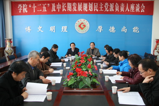 12月21日下午,学院在新校区第一会议室召开“十二五”及中长期规划民主党派负责人座谈会。院党委书记、院长王志刚出席会议并讲话,院党委副书记李全武主持会议。