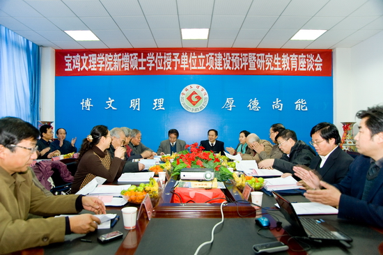 汇报会上,王志刚对省预评组领导、专家莅临我院检查指导立项建设工作表示热烈欢迎。他说,在雪花纷飞、年末岁初的时节省学位委员会的老领导、各位专家检查指导我院立项建设工作,是对我院工作的极大支持。他代表全院19000多名师生员工对各位领导和专家多年来我院学科建设与学院发展的关心和支持表示感谢。王志刚指出,两年来,学院党委、行政为全力做好新增硕士学位授予单位立项建设工作,力求做到对立项建设重要性意义的思想认识到位、组织领导到位、责任落实到位、经费保障到位、氛围营造到位等,保证了立项建设工作的积极顺利开展。王志刚表示,2011年是我院立项建设的攻坚年,各位领导、专家对立项建设工作全面把脉、指导,对我院顺利通过上级的中期检查和末期验收至关重要。他通报了两天前我院党员代表会议审定的“十二五”及中长期发展规划,《规划》确定了未来5到10年我院的发展蓝图,确立了“实现研究生教育和筹建宝鸡大学”两大发展目标,高质量完成新增硕士学位授予单位立项建设并顺利通过国务院学位委员会的验收,如期获得硕士学位授予权,开始研究生教育;用十年时间筹建并更名为宝鸡大学。
