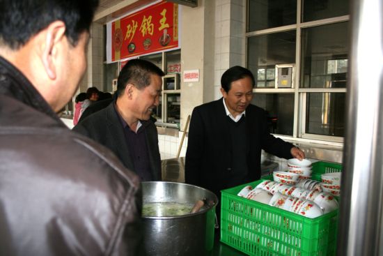 3月11日上午,院党委书记、院长王志刚,副院长王普藩深入老校区学生食堂检查工作。王志刚详细地检查了学生食堂的饭菜质量、价格、安全卫生,询问了大学生文明就餐习惯养成情况,并对开学初学生食堂在保证饭菜质量、稳定饭菜价格等方面所做的工作给予了充分肯定。同时,他还对学生食堂餐厅环境改造提出了具体意见。王普藩对开学以来学生食堂积极应对市场原材料上涨、稳定饭菜价格所采取的大宗采购、贮存等工作作了介绍,并要求学生食堂必须按照上级和学院的要求,做到食堂饭菜质量不降、数量不减、价格不涨。同时,做好学生餐厅维修改造工作。