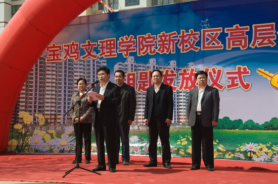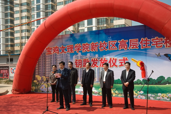 王志刚向学院后勤管理处发放了“金钥匙”。新校区高层住宅楼360户教职工高高兴兴地领取了房屋钥匙,开始装修,准备乔迁新居。