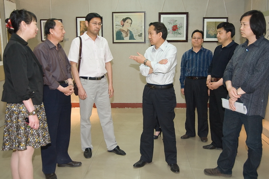 4月26日下午,院党委书记、院长王志刚在艺术楼美术展厅参观了由美术系举办的“庆祝建党90周年学生党员书画、设计、摄影作品展”。