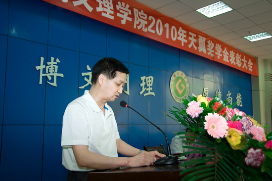 米晓东在讲话中指出,天翼奖学金的设立,每年可以帮助50名品学兼优的大学生,以资助他们更好地完成学业,成为四化建设的栋梁之材。他对同学们提出了三点希望:第一是要学会感恩,感恩社会,感恩企业,感恩学院。第二是要学会做人,学会做事,努力成为社会有益的人。第三是要努力学习,立志成才,牢记胡锦涛总书记在庆祝清华大学建校100周年大会上对青年学生提出的“三个结合”的要求,做一名全面发展的人。