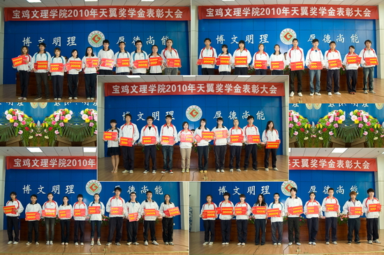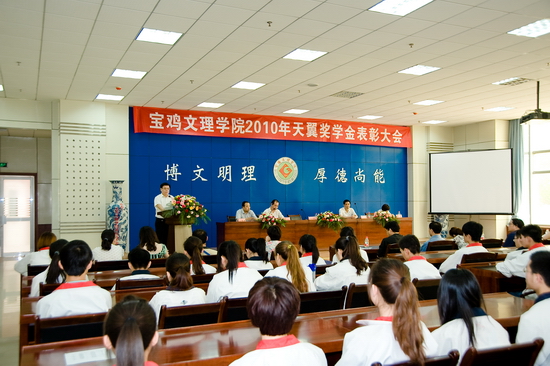 会上,院大学生资助管理中心主任刘景世宣读了《beat365英国官方网站关于表彰2010年天翼奖学金获得者的决定》。双方领导为获奖学生颁发了奖金和证书。获奖学生代表中文系王蓓同学向中国电信宝鸡分公司和我院领导汇报了一年来的思想、学习、生活中的情况和取得的成绩,表达了对中国电信宝鸡分公司的感激之情及继续努力的决心。