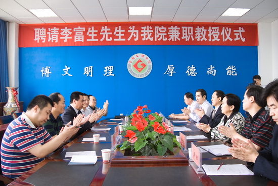聘任仪式上,王志刚代表学院对李富生先生受聘为我院兼职教授表示欢迎和感谢。他从办学历史、师资队伍、学科建设、区位优势、管理规范、人才培养、评估获优、发展前景等八个方面简要介绍了学院的基本情况。他说,体育学科在我院人才培养中发挥了极为重要的作用,为学院赢得了多项荣誉,多年来,市体育局也给予了我院极大地帮助和关心,此次李富生先生受聘一定会使我院体育学科发展更上一个台阶,使宝鸡市的体育事业和我院的体育人才培养形成良性互动。