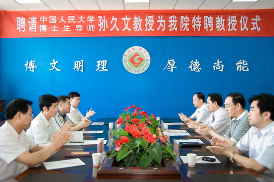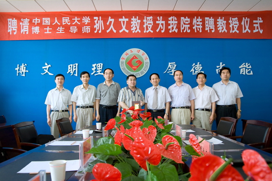 6月10日上午,我院在新校区第一会议室举行聘任仪式,中国人民大学博士生导师孙久文教授受聘为我院特聘教授。院党委书记、院长王志刚出席会议并讲话,院党委副书记李全武主持聘任仪式。