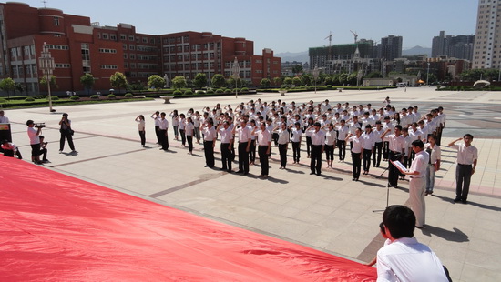 在隆重庆祝中国共产党成立90周年的喜庆日子里,6月24日上午,我院在新校区图书馆前隆重举行“绣党旗 铭党恩 永远跟党走”主题活动暨重温入党誓词仪式。院党委书记、院长王志刚,院党委副书记米晓东,院党委副书记李全武,党委办公室主任张鹏,党委组织部部长郑存库,院团委书记黄玮、副书记党建波等出席活动。