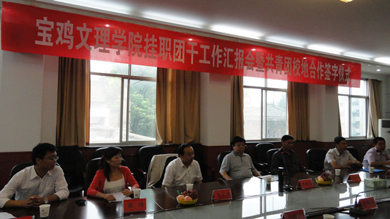 8月22日至23日,院党委副书记米晓东率队赴眉县、佛坪县慰问我院在当地挂职团干,并出席了两地挂职团干工作汇报会暨共青团校地合作签字仪式。眉县县委常委、宣传部长杜勇社,宝鸡团市委书记朱小强,团市委组织部长李军,佛坪县委副书记、县长刘德力,县委常委、常务副县长邹恩贵,县委常委、宣传部长张凌,县人大副主任程玉明,县政协副主席吴康及两地团委负责人、相关部门负责人参加了工作汇报会暨签字仪式。