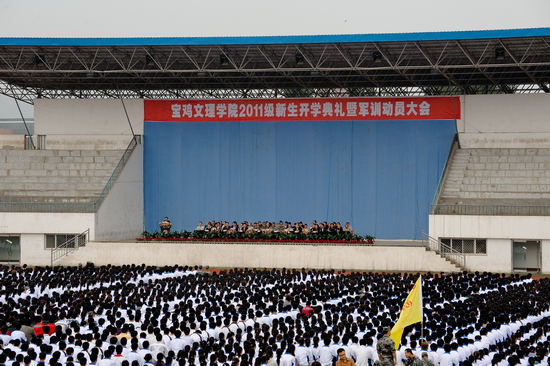 9月7日上午,我院2011级新生开学典礼暨军训动员大会在新校区体育场隆重举行。院党委书记、院长王志刚,院党委副书记、纪委书记米晓东,院党委副书记、工会主席李全武,副院长傅志军、王普藩、赵荣侠以及中国人民解放军96401部队副团长张智华等出席大会并在主席台就坐。在主席台就坐的还有各系(部)党总支书记、系主任及各职能部门主要负责人。2011级全体新生及承担我院新生军训任务的96401部队军训团全体官兵参加了会议。王志刚在大会上发表了重要讲话,副院长傅志军主持大会。