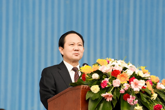院党委书记、院长王志刚在讲话中代表学院党委和行政以及全院师生员工向来自全国30个省、市、自治区的6100多名新同学表示衷心的祝贺和热烈的欢迎!他向新生简要介绍了学院发展的历史沿革和近年来在教育教学改革和建设方面取得的成就,并对2011级新同学提出了几点希望和要求:一要志存高远,成为一个有理想的青年人;二要博文明理,成为一个有文化的青年人;三要厚德尚能,成为一个有作为的青年人;四要刻苦训练,成为一个文武兼备的青年人。