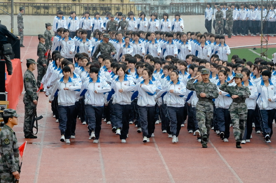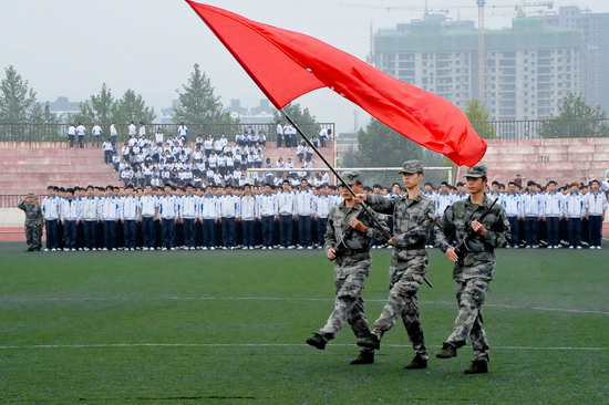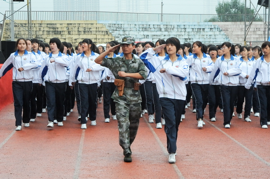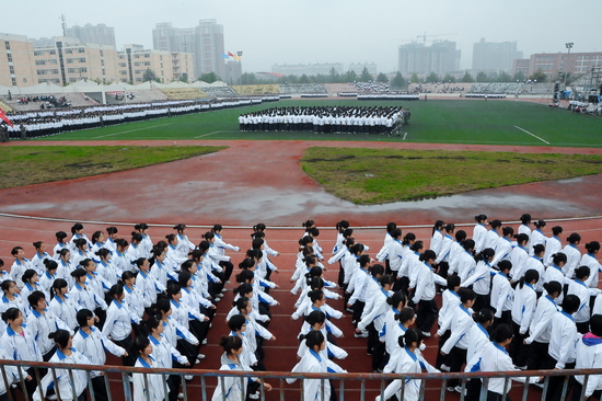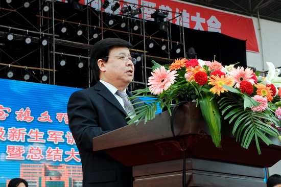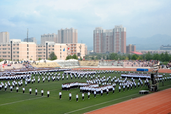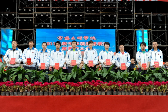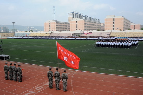 9月14日下午,学院在新校区体育场举行2011级新生军训汇报表演暨总结大会。中国人民解放军96401部队副参谋长高庆峰、院党政领导出席大会。副院长傅志军主持大会。