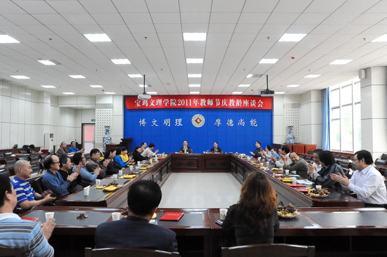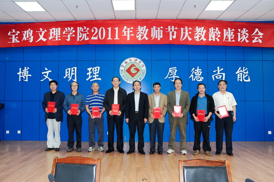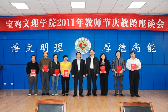王志刚结合今年教师节主题,就教师队伍建设中的师德师风建设讲了三点意见。一要加强师德师风建设,这是实现学校科学发展的需要,是学校教育的重中之重。学校建校50多年来,始终坚持把培养人这一大学的根本属性作为立校之本,坚持“以生为本,以师为尊”,坚持以质量求生存,把教学和人才培养一直作为学校的中心任务,从严治校,从严治学,为国家培养了一批又一批优秀人才。在多年的辛勤努力下,我院荣获教育部本科教学水平评估优秀学校,又获批为硕士学位授予单位立项建设学校。二要弘扬文理精神,树立新时代的师德观。师德建设的前提是树立新时代的师德观,就是与社会主义价值理念和现代大学精神融为一体的师德观。三要加强制度建设,探索师德建设的长效机制。他希望大家要把庆教龄当作人生新起点,要确定新目标,再做新贡献。要继续做“三育人”的模范履行者。要继续做宝文理大学精神的承载者、守护者和传承者。不断增强教书育人、以身立教的社会责任感,用自己的实际行动践行和弘扬“博文明理、厚德尚能”的校训精神,为全面完成“十二五”发展规划的各项任务而努力。
