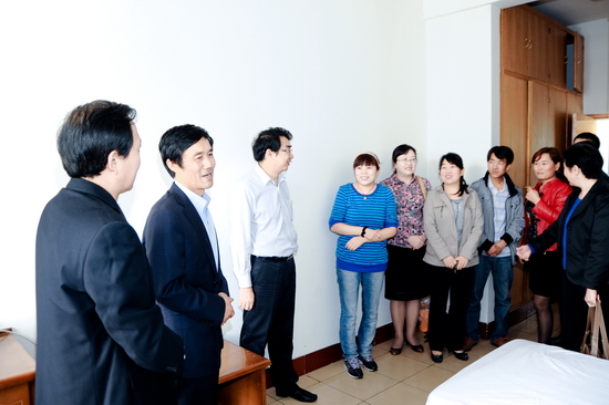 检查过程中,张雄强听取了我院关于2011年“国培计划” 项目工作进展情况的简要介绍,实地查看了“国培计划”项目学员上课、就餐等培训场所,深入学员宿舍看望了培训学员,并与学员进行座谈。座谈中,学员们十分高兴,踊跃发言,谈感想,说体会,感谢国家提供培训机会和学院精心组织。张雄强详细了解了学员到校后的生活及学习情况,询问学员对“国培计划”有何感想、问题及建议。他强调,“‘国培计划’ 培训,是国家级高水平的引领性、示范性、播种性培训,由国家提供经费,提供优质资源,其目标任务就是希望各位学员,能从繁重的、琐碎的日常教学工作中能解脱出来,超脱出来,集中时间,静下心来研修学习,达到提高中学骨干教师的教育教学能力水平,使其在推进素质教育、实施基础教育课程改革和大规模教师培训中发挥骨干带头作用。大家作为基础教育第一线的骨干教师,要特别珍惜这次难得的机会,认真学习,积极思考,深入钻研,努力探讨,回去以后在教育教学工作中和专业发展方面切实发挥引领辐射和模范带头作用。
