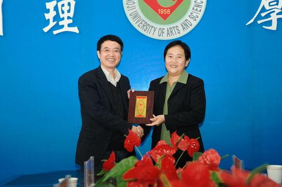 聘任仪式上,副院长赵荣侠代表学院对曹顺庆教授受聘为我院特聘教授表示热烈欢迎和衷心感谢。她从办学历史、师资队伍、学科建设、区位优势、人才培养质量、区位优势、发展前景等6个方面简要介绍了学院的基本情况。她说,中国语言文学学科是我院的一张名片,在教学和科研等方面实力雄厚,在立项建设期间得到曹顺庆教授的加盟和指导,一定会使中国语言文学学科实现跨越式发展。曹顺庆教授表示受到我院的聘请十分荣幸,他说会尽己所能为中国语言文学学科的发展贡献力量。最后,副院长赵荣侠向曹顺庆教授颁发了聘书。