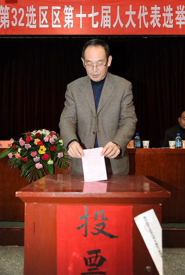 投票开始前,院选举工作领导小组办公室副主任赵健宣读了正式代表候选人政法系讲师卜燕和音乐系讲师董丽娅的简历。总监票员杨科正介绍了选票的填写方法。整个选举按程序有条不紊地进行,选民们认真阅读自己手中的选票,然后慎重地在选票上填下自己意愿,投上自己神圣而庄严的一票。