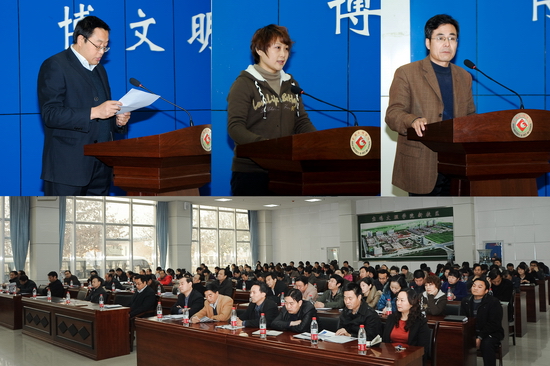 电气系党总支书记宋崇碧、地环系党总支书记王陆军、中文系党总支副书记赵艳在会上交流了2011届毕业生就业工作经验。会议还表彰了计算机科学系、电子电气工程系、中国语言文学系、美术系、地理科学与环境工程系、历史文化与旅游系等2011届就业工作先进单位,院领导为受表彰的六个系颁发了奖牌。