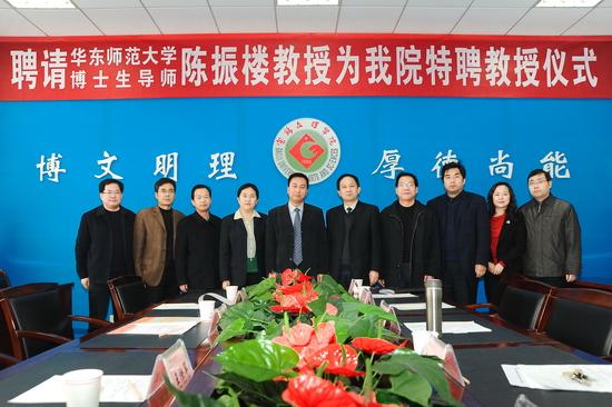 11月28日上午,我院在新校区第一会议室举行聘任仪式,华东师范大学博士生导师陈振楼教授受聘为我院特聘教授仪式。院党委书记、院长王志刚出席会议并讲话,副院长赵荣侠主持聘任仪式。