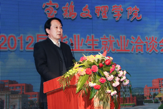2日晚,学院在万利酒店举行欢迎宴会,省教育厅学生处处长叶军致辞,院党委书记、院长王志刚致欢迎辞,党委副书记米晓东主持欢迎晚宴。院党委副书记李全武,副院长傅志军、赵荣侠,省教育厅学生处副处长韩公营及西安市教育局、宝鸡市教育局、宝鸡市人社局、合阳县教育局、宝鸡市人才交流中心的领导出席欢迎宴会。就业中心主任李周让通报了2012届毕业生基本情况和洽谈会准备情况。王志刚在讲话中指出:本届毕业生是学院荣获“教育部普通高校本科教学工作水平评估优秀学校”后招收的第二届学生,生源质量高,整体基础好;在校期间,正值学院实施新的人才培养方案,构建持续提高教育教学质量长效机制、硕士学位授权单位立项建设和全面实施大学文化建设的关键时期,良好的办学条件和浓厚的大学文化氛围使得这一届学生品德优良,具有强烈的社会责任感;基础扎实,具有完善合理的知识结构;学风优良,具有较强的创新精神和实践能力;综合素质较高,具有较强的社会适应能力。学院为洽谈会推荐的毕业生在专业、人数、质量等方面能够满足用人单位的需求。他衷心希望各用人单位能够选聘到自己满意的毕业生。