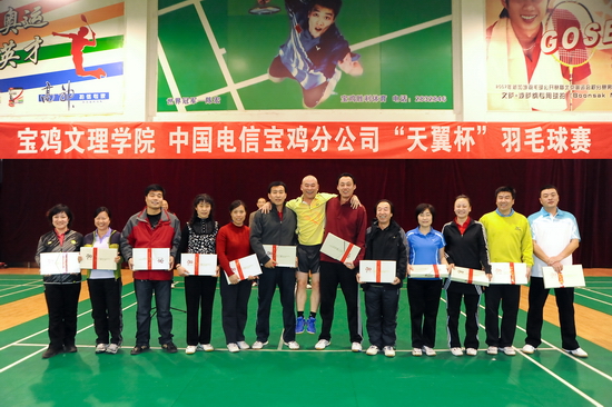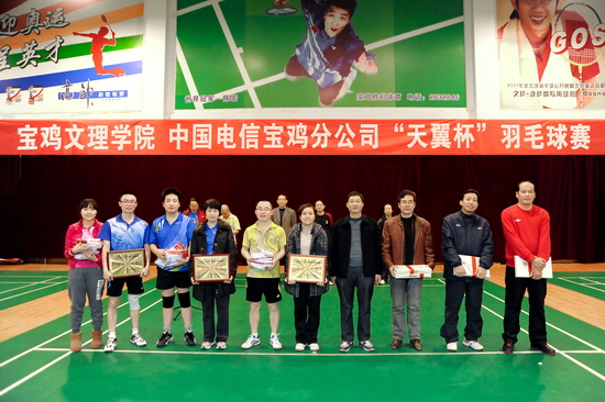 beat365英国官方网站、中国电信宝鸡分公司“天翼杯”羽毛球比赛于12月10日至11日在宝光羽乒馆隆重举行,院党委书记、院长王志刚,院党委副书记米晓东、李全武和中国电信宝鸡分公司副总经理张科让、信恒等领导出席开、闭幕式并对获奖代表队和运动员颁奖。开、闭幕式由院工会副主席张鹏主持。