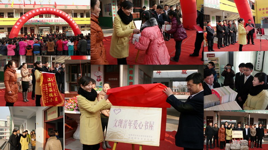 12月15日,我院团委捐建的“文理青年爱心书屋”揭牌仪式在眉县槐芽镇中心小学隆重举行。眉县县委常委、组织部部长魏建儒,院党委学工部副部长、团委书记黄玮,团市委学少部部长许妍,眉县槐芽镇党委书记达军平,眉县团县委书记张军辉,院团委副书记党建波,我院在眉县挂职团干、眉县团县委副书记张磊等出席了揭牌捐赠仪式。我院大学生代表以及槐芽镇中心小学全体师生参加了仪式。张军辉主持揭牌仪式。