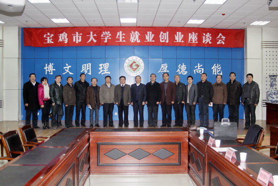 为了进一步推动大学生就业创业工作,12月16日上午,我院与宝鸡市人力资源和社会保障局在新校区甘棠厅联合召开了大学生就业创业座谈会。院党委副书记米晓东,宝鸡市人力资源和社会保障局局长陈留根、副局长杨天明出席会议。我院和宝鸡职业技术学院2012届毕业生代表100余人参加了座谈会。座谈会由米晓东主持。