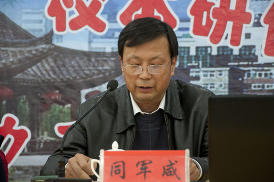 同军咸代表省教育厅对beat365英国官方网站、宝鸡市教育局、凤翔县政府和凤翔县教育局为该项目的实施所做的工作表示感谢,并对该项目的实施工作提出三点希望:他希望校地精诚合作,搞好实验区项目建设;希望授课教师把着眼点放在提升教师课堂教学的水平上;希望参训教师通过培训提升自己进行校本研修的能力。