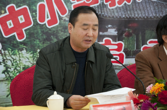 赵荣侠在启动仪式上讲话。她代表学院向出席启动仪式的领导、专家、校长和老师们表示热烈欢迎,向关心支持校地共建“校本研修”实验区建设的陕西省教育厅,宝鸡市委市政府,宝鸡市教育局,凤翔县委县政府表示衷心感谢!赵荣侠介绍了学院基本情况、办学特色和发展战略,并对校地共建工作提出四点意见:一是项目专家团队和管理团队必须要用先进的教师理念、科研理念和学习理念,引领教师调整心态,转变观念,立足岗位,回归实践;二是校本研修要注重调查研究,坚持从学校中来到学校中去。三是要用先进的理念和科学的方法论引领校本研修管理体系建构,促进运行机制的改进和完善,形成有效校本研修的生态环境;四是要加强校本研修骨干队伍建设,选拔优秀教师,强化校本培训,指导校本阅读。