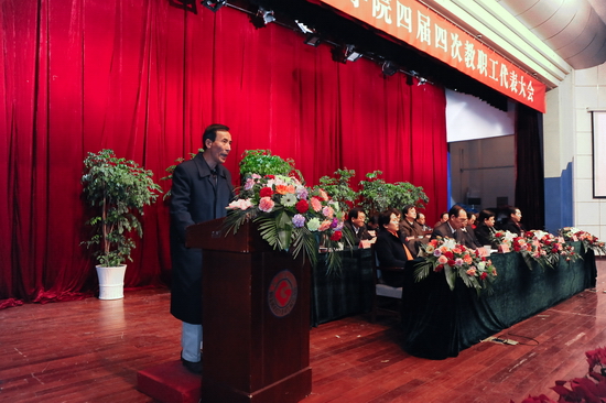 12月24日,我院四届四次教职工代表大会在新校区音乐厅隆重举行。院党委书记、院长王志刚,党委副书记米晓东、李全武,副院长傅志军、赵荣侠等出席大会。146名正式代表、14名列席和特邀代表参加了本次大会。大会主要议题是听取、审议院长工作报告,听取和审议三个职能部门的校务公开工作报告及四届三次教代会提案落实情况的报告。李全武主持大会开幕式。大会开始前召开了四届四次教代会预备会。