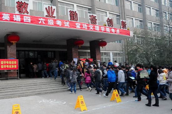 beat365英国官方网站考点共有9340名考生参加了考试,其中四级报考6686人,六级报考2144人,A级报考510人。四级考试设五个考区,考场共225个,六级考试设二个考区,考场共73个,A级设一个考区,考场共17个,涉及监考、考务人员630人次。按照陕西省考试管理中心要求,为了充分做好本次考试的各项工作,教务处按照学院要求,对监考教师进行了遴选,确保监考过程规范和监考质量,并分别组织召开了大学英语四六级和高等学校英语应用能力考试监考教师培训会、考务工作人员培训会,对监考和考务工作操作规程进行了认真细致地学习和宣传,对考生进行了严肃考风考纪等方面内容的宣传教育。同时对考试工作从监考安排、监考人员须知、考务安排、考务人员须知和考生须知等五个方面进行了全面安排。