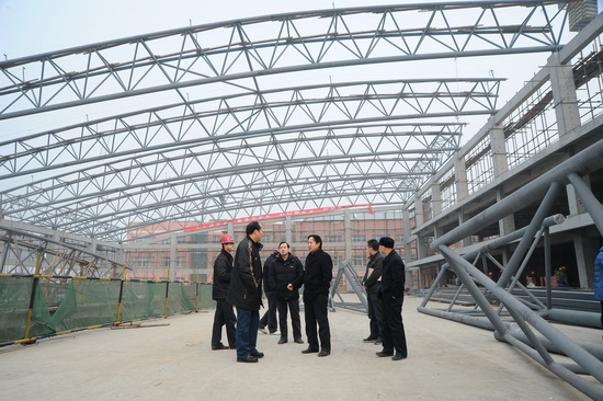 1月11日上午,院党委书记、院长王志刚,副院长杨子元等领导来到新校区综合球类训练馆建设工地,检查工程建设进展情况。