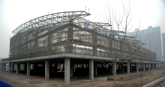 在综合球类训练馆建设工地,基建处处长刘宗杰和陕西工建集团十建项目部执行经理肖卫忠对综合球类训练馆建设情况作了汇报,王志刚、杨子元在听取了汇报后,登上训练馆建筑实地察看了正在安装钢架的主体工程,并向相关技术人员询问了工程建设进展情况。王志刚在实地察看过程中作了重要讲话。他指出,综合球类训练馆是集教学、竞赛、师生活动等一体的多功能体育场馆,全院师生员工对综合球类训练馆工程建设高度重视,热切期盼训练馆投入使用。他要求施工方要切实加强管理,在确保工程质量和施工安全的前提下,必须按期交工。基建处和体育系在工程建设过程中务必保持沟通和联系,要根据学校实际充分考虑训练馆的各种功能要求进行施工以及后期的内部装修,做到工程建设不留遗憾。王志刚特别强调,临近春节,希望施工单位要处理好与工人的劳资关系,确保辛辛苦苦工作了一年的工人师傅能过上一个欢乐祥和的春节!他代表学院党政和全体师生向施工单位陕西工建集团十建全体员工表示问候,对在严寒深冬辛勤工作在一线的工人师傅们表示感谢!提前祝愿大家新春愉快!