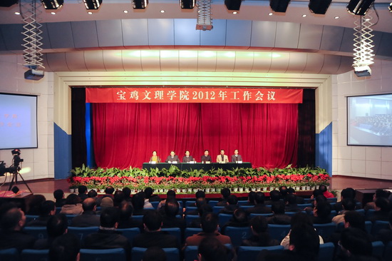 他指出,2012年是“十二五”第二年,是我院新增硕士学位授予单位立项建设期满检验收并获批为授权单位、实现研究生教育的关键之年,也是我院深度开展校地合作,筹建宝鸡大学相关任务的落实之年。2012年学院党政工作的指导思想是:紧紧围绕《学院十二五及中长期发展规划》确立的两大历史任务,以邓小平理论、“三个代表”重要思想和科学发展观为指导,以注重内涵建设,推动科学发展为主题,以顺利通过国家新增硕士学位授予单位立项建设期满验收并获批为授予单位为重点,以持续提高人才培养质量为根本,以切实转变教育思想观念为先导,以深化管理体制改革为动力,以提高党建工作科学化水平为保障,围绕中心,扎实工作,开拓创新,锐意进取,在学院建设发展上实现新突破,取得新成就,迈上新台阶,以优异成绩迎接党的十八大胜利召开。