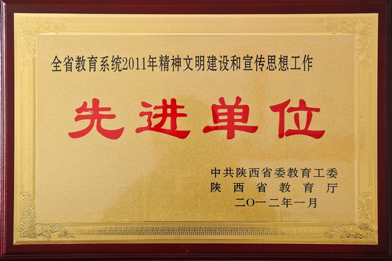 会上,省委教育工委、省教育厅领导为获得全省教育系统2011年度精神文明建设和宣传思想工作先进单位、先进个人颁发了奖牌和荣誉证书,我院荣获全省教育系统2011年度精神文明建设和宣传思想工作先进单位。