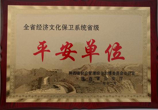近日,我院被陕西省社会综合治理委员会办公室、陕西省公安厅授予2011年全省经济文化保卫系统省级 “平安单位”称号,被宝鸡市综治办、宝鸡市公安局命名为“平安单位”。(保卫处供稿)
