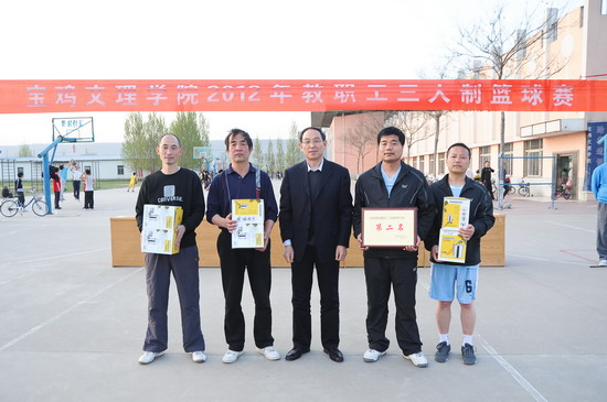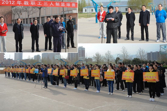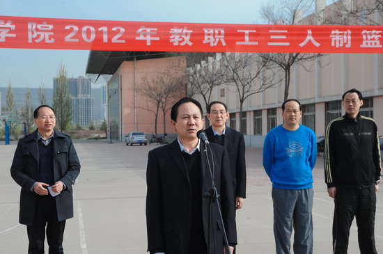 我院2012年教职工三人制篮球赛于4月7日在新校区篮球场隆重举行,院党委书记、院长王志刚,院党委副书记、工会主席李全武等领导出席开、闭幕式并对获奖代表队颁奖。院工会副主席张鹏主持开幕式。