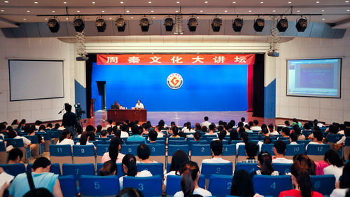 聘请仪式结束后,胡义成研究员在新校区音乐厅作了题为《周公的仁政思想与陕西文化产业发展》的学术报告。报告会由政法系主任赵克平教授主持。400余名师生聆听了报告。报告会上,胡义成研究员以“关天文化产业”为对象,指出当前 “西安主打秦汉唐、宝鸡主打周文化”的说法的片面性,提出周公仁政思想在关天文化产业发展中的巨大意义,“以人为本”成为衡量生产力发展的重要标准。最后,他指出“关天文化产业”应以“周秦互补” 为特点。胡义成研究员的讲解深入浅出、通俗易懂,深受广大师生的好评。(学科建设与研究生教育管理处、周秦伦理文化与现代道德价值研究中心供稿)