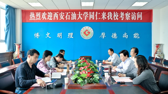 祝亚荣在会上对本次来访的目的作了说明,她简要介绍了西安石油大学的办学历史,并对教学、科研、学科建设、学生管理、纪检等方面的工作作了介绍。