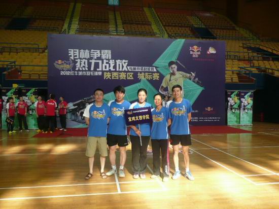 5月26日—27日,“羽林争霸”2012红牛城市羽毛球赛陕西省总决赛在西安城市运动公园体育馆举行。beat365代表队以宝鸡站亚军身份代表宝鸡市参加这次比赛。在比赛中,beat365代表队顽强拼搏,敢拼敢打,在击败延安市和榆林市的两支球队后顺利冲进前八。
